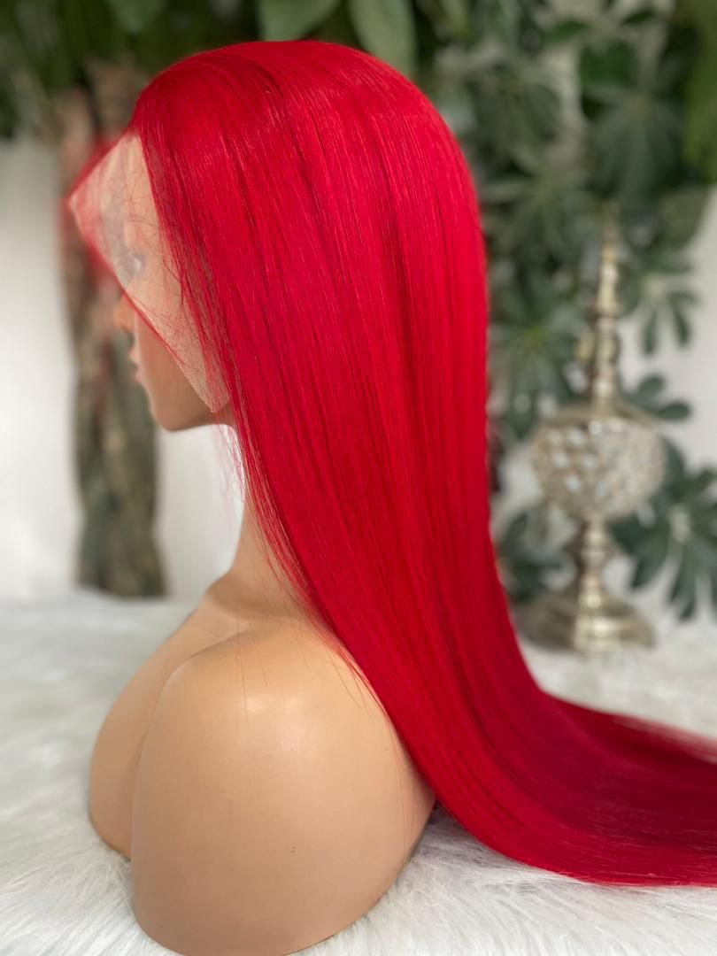 Turn heads with this bold and vibrant Straight red Lace Front Wig, crafted from 100% human hair. The silky-straight texture combined with the rich red shade makes it the perfect choice for anyone looking to add both elegance and personality to their look.